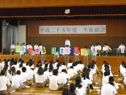 生徒総会とは、一人一人が自覚と責任を持って運営し、学校生活をよりよい生活にするための会です。