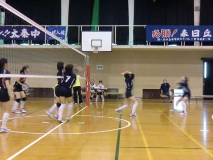 続く、3回戦。相手は、シードの太秦をストレートで退けた春日丘。完全にアウェーの中、実力的にみても大敗の予想であったが、内容的には、十分な試合であった(13−25・11−25)。