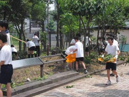 夏季休業期間 校内清掃(植木剪定・下草処理)
