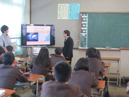 本日、2年生の国際理解教育事業としてPICNIKより4名の留学生の方に来ていただき、自分たちの国や日本に来た理由や日本と自国の違いについて、話をしていただき、交流する機会をもちました。