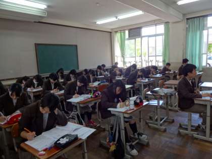 1・2・3年、各学年とも土曜学習を実施しました。テスト前の休日をどのように過ごすか。各自が予定をたて参加してるだけあって、学習できるプリントを用意してはあるのだが、持参した問題集やプリントを集中できる環境の中でしっかり取組んでいました。