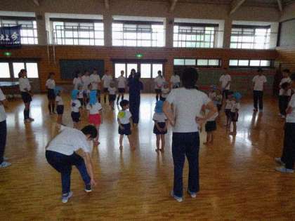 「技術・家庭」家庭分野の単元の中に「ともに生きるわたしたち」第2章「幼児とのふれあい」について学ぶようになっていて、教科学習の中で、幼児の生活と遊びについてや子どもにとっての家族についてなどを学んでいます。その一環として、今日は小さなお客様をお招きし。保育実習をさせていただきました。初めは、中学生の方が緊張して始まった事業でしたが、すぐに打ち解け、幼児たちを楽しますことができていました。