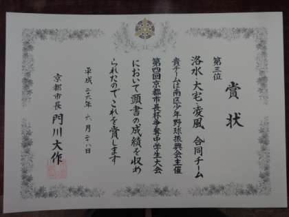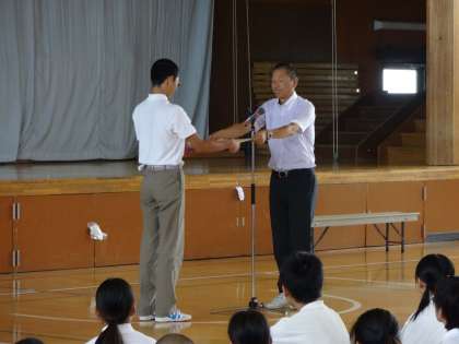 はじめに、野球部が大会で3位に入賞した表彰がありました。