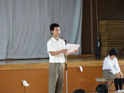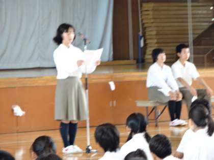 1年・2年・3年の代表生徒が、1期の振返りとこれからの課題について立派に報告してくれました。詳しい内容は、本日配布された学校だより19号に掲載しておりますので、ご覧ください。