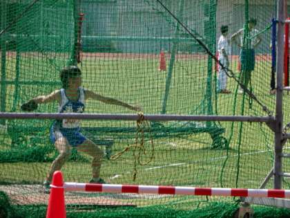 9月21日 西京極運動公園陸上競技場にて大会が行われました。本校からは4名の選手が、女子100mハードル、砲丸投げ、円盤投げの種目に参加しました。同好会からはじまり、少ない人数での練習に苦労があったと思います。出場しているどの種目も技術が必要で、円盤投げなどは、出場している選手でもゲージから円盤が出ずネットにかかる試技多くみられました。