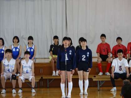 バスケットボール部・女子バレーボール部・男子バレーボール部の決意表明。