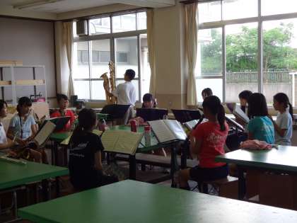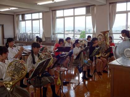 吹奏楽部は、教室で個別懇談をしているので、教室から離れた実習教室で練習をしています。