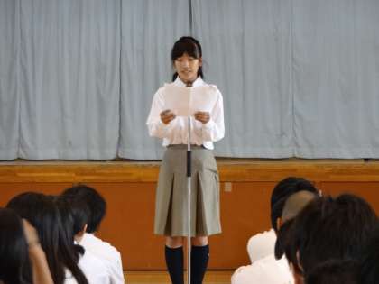7月17日金曜日 心配されていた台風11号の影響も小さく全校集会を行うことができました。
