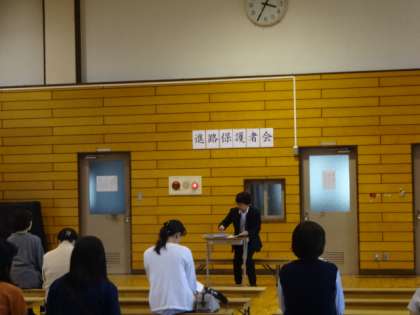 9月30日 格技室にて 第2回進路保護者会が行われました。いよいよ3年生は、進路先を具体的に決めなければならない時期に入ってまいりました。