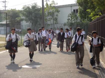 10月9日金曜日 PTA朝のあいさつ運動を行いました。1週前にもPTAの方に来ていただいていましたが、PTAの方に気がついたら、少し近づき、立ち止まりあいさつをしていく生徒もいます。「おはようございます」の一言ですが、どのような姿勢でするかで、相手に伝わるものも違ってきます。 コミュニケーションの第一歩、身に付けていってほしいと思います。