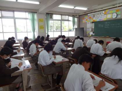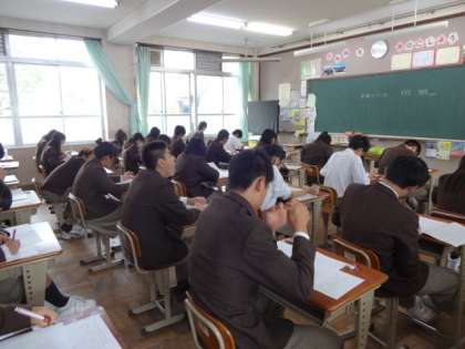 10月14日水曜日 2年生では学習確認プログラム プレ・ステージ 2を実施しました。予習シートを取り組み、今日に臨んでいたようですが、どうだったかな?