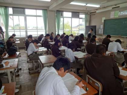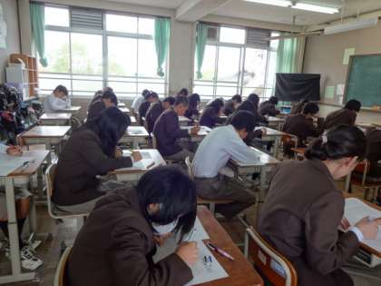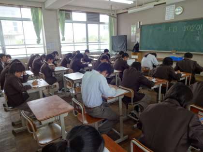 10月14日水曜日 3年生は学習確認プログラム セカンド・ステージです。3年間の学習確認プログラムテストもこれが最終となりました。このテストを有効に活用して中学校の学習を取り組むことができたか振り返って見てください。これから進学をする生徒にとっては、より範囲の広い選抜試験が待っています。振り返りをした中で、不得意だった・できていなかったところをしっかり見直していかなければならない時期です。学習確認プログラムの復習シートを、見直しに役立てていってほしいと思います。