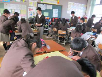 1年生は、先日京都市内を班別で散策した内容をまとめる作業をしました。