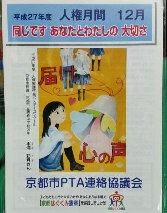 12月5日(土)伏見西支部(幼・小・中学校26校) 人権尊重街頭啓発活動が、約200人のPTA関係者が伏見板橋小学校へ集まり、事前学習会を経て、参加者全員による大手筋商店街近辺にて街頭啓発物品の配布を行いました。