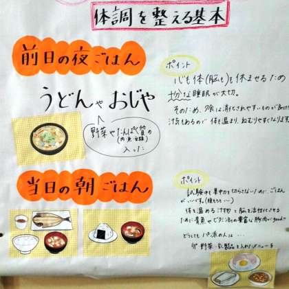 頑張れ3年生!の意味を込めて、保健室から受験生に対する食についての大切さを保健室前に掲示しています。食育とともに生きていくうえで「食事」「睡眠」「生活リズム」のバランスが必要不可欠なことです。3年生だけでなく、1,2年生や保護者・地域の皆様も参考にして頂ければと思います。