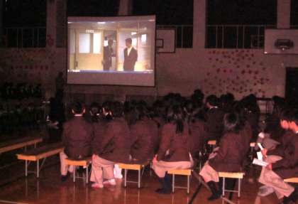 迎える会は歓迎の言葉や校歌の披露や学校の様子をビデオで紹介しました。