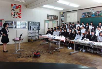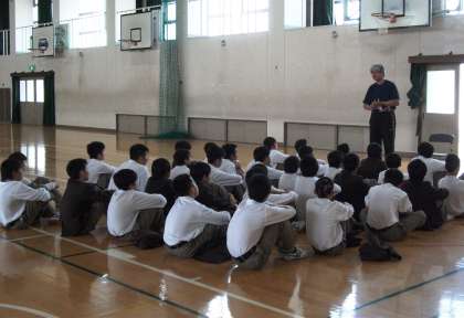 本日の5限、1年生の女子は音楽室にて、ワコールの社員の方を講師に迎え、保健指導(つぼみスクール)を行いました。また、男子は体育館にて生活面についての話がありました。