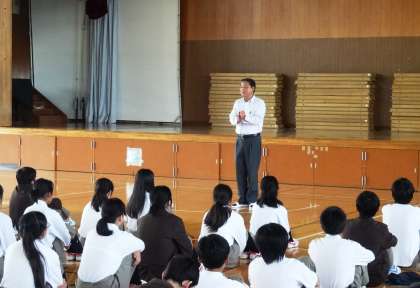 2年生は、本日5月23日6時間目に体育館にて、生き方探究チャレンジ体験の前日指導を行いました。明日からいよいよ、4日間の日程で職場体験が始まります。これまで、事前に学習したり、訪問してお願いをしたりと準備をしてきました。受入をして頂いている事業所の方々に、感謝の気持ちを忘れず頑張ってきてほしいと思います。