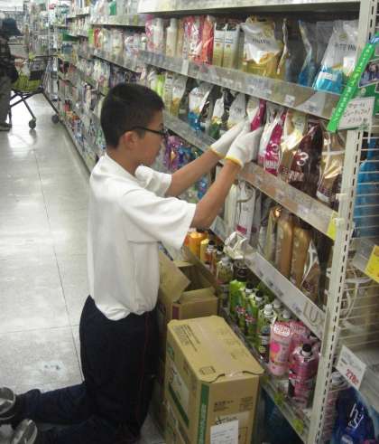 商品の整理、レジのお手伝いと頑張ってます
