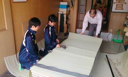 ネギの出荷準備、畳製造のお手伝いです。