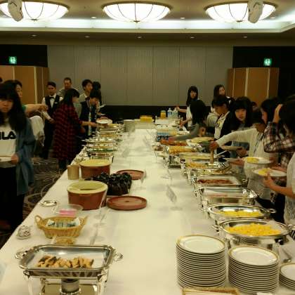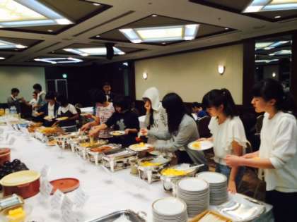みんな元気にバイキング形式の朝食です。