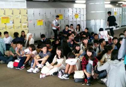 都内の判別研修を終えて、集合場所(舞浜駅)に全員無事に集まりました。この後、チケットをもらいディズニーランドへ向かいます。