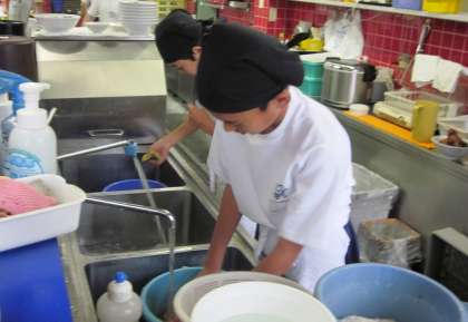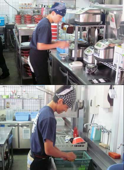 ラーメン横綱南インター店、来来亭新堀川店では、ご飯の盛りつけや洗い物、調理のお手伝いに頑張っています。