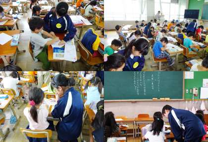 横大路小学校では、教室に入って先生のお手伝いをしていました