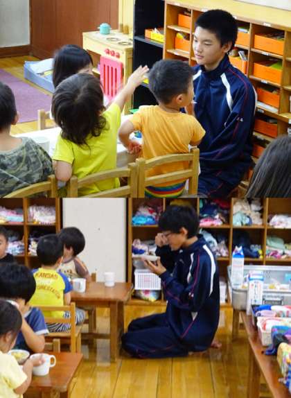 ピノキオ保育園で取れたサクランボのジャムつきケーキのおやつをいただきま〜す。