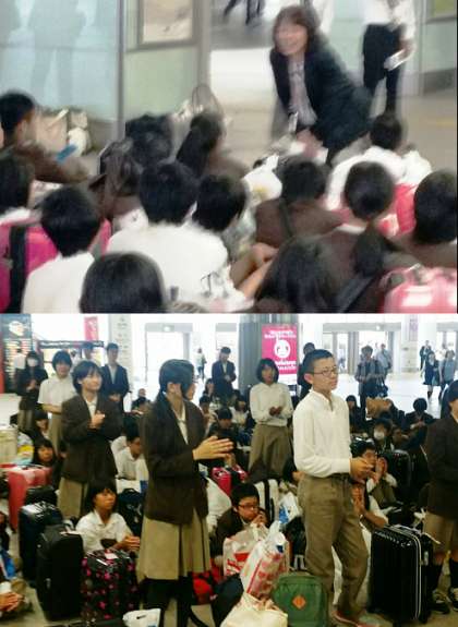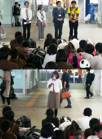 お世話になった添乗員さん、写真屋さん、副実行委員長の話、校長先生の話、学年主任の先生の話が終わり、トイレ休憩の後、新幹線のホームに上がります