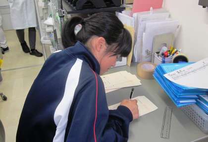 金井病院。受付の仕事を体験させていただきました。文字は丁寧かつ正確に書かなければなりません。