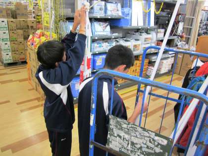 ロイヤルホームセンター京都横大路店。お店の登りを作成しています。学校よりお店で働くほうが楽しいと言っています。