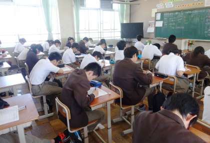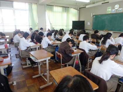 昨日の3年生に続き、今年度の合唱コンクールの選択曲を聴き、真剣に歌いたい曲を選んでいました。