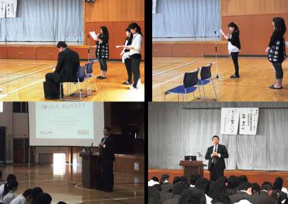 3限目に、PTAや地生連の協力もえて洛水ヒューマンネットワークが行われました。京都府金融広報委員会事務局長の谷原章文氏に「『働く』って、なんだろう?」と題して講演をしていただきました。