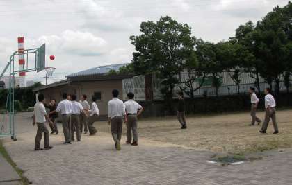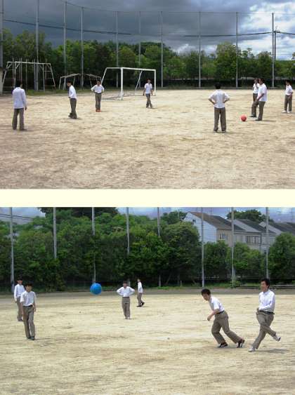 グランドではサッカーやバスケットをして楽しんでいます。また、図書室では図書委員の人が図書室の開館をしてくれていました。