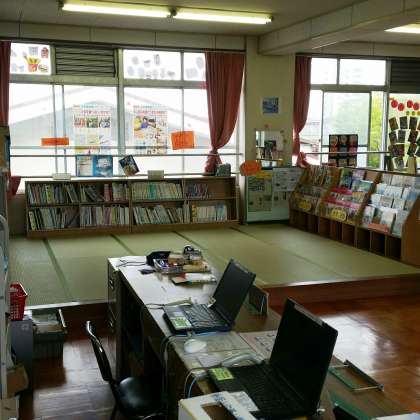 その階の図書室をちょっとのぞかせてもらうと、畳が敷いてありました。中学校もあれば、もっと利用者が増えるだろうと思い、見ていました。