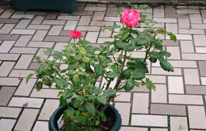 4月には校門入ったところにたくさんのバラが咲いていたのに長続きすることなく枯れてしまいました。それを農園芸部の生徒が、枝を切り、肥料をやり、日々水をまくことでバラを復活させてくれました。ありがとう。