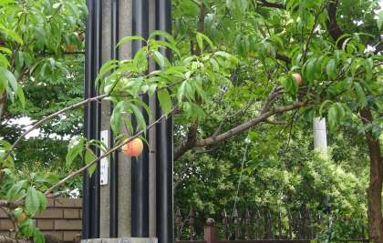 写真は校内の桃の木に実がつきました。