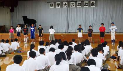 緊張感のある中激励会は行われました。ベストを尽くし頑張ってください。また、暑い日が続きますが、冷たいものを取り過ぎず、健康管理にも十分注意してください。