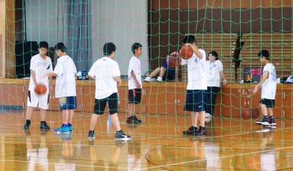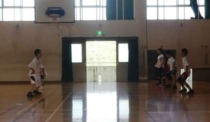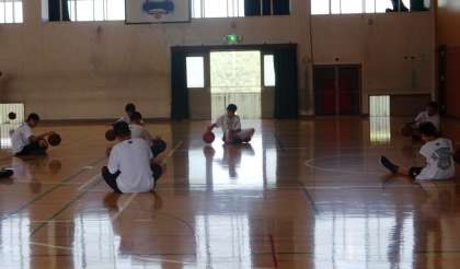 どこの部活動も基本練習を黙々としています。バスケットボール部です。