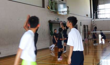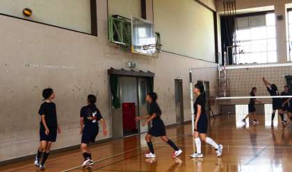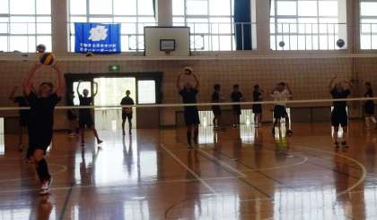 バレーボール部です。男女で同じ練習をしています。