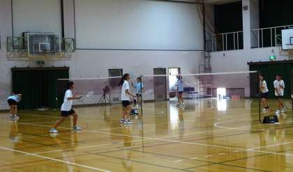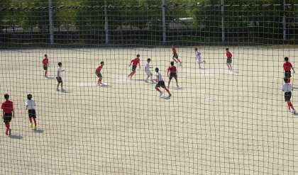 午後からは、バドミントン部はダブルスの練習をしていました(上)。サッカー部は練習試合をしていました。(下)