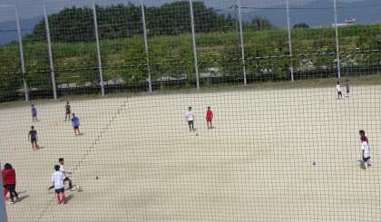 昨日練習試合をしていたサッカー部は、本日は練習。パスまわしをしています。