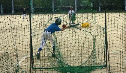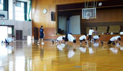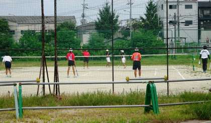午後からはバスケットボール部(上)が活動を始めました。また、午前に引き続き、ソフトテニス部(中)、野球部(下)が活動しています。