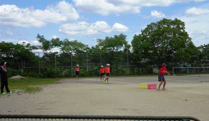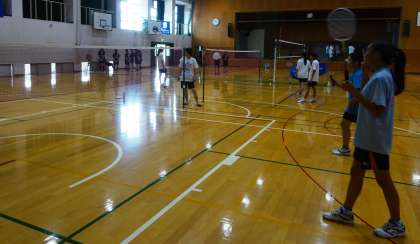 今日も暑い中、頑張っています。バドミントン(上)、ソフトテニス部(中、下)です。