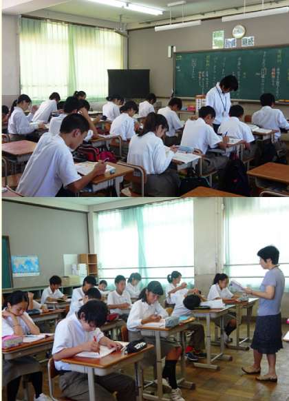 上から、2年2組 国語、英語(分割授業) 、2年3組 数学 、1組 音楽 です。