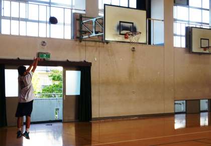 バスケットボール部は、現在 9名で活動しています。「自分たちが今、出来ることを一生懸命表現すること、そして 1つでも多く勝つ」ということを目標に、9月4日に行われる新人戦初戦に向けて、頑張って練習をしています。