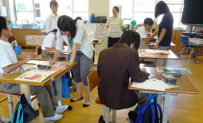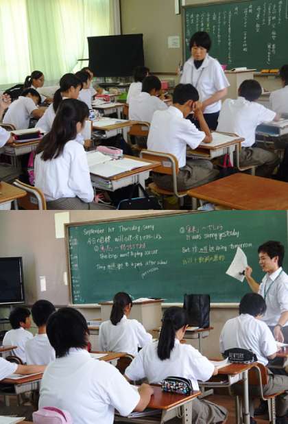 上から、2年2組国語、英語(分割授業) 、2年3組 理科、1組 国語 です。