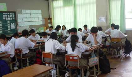 今日も朝から暑いですが、頑張っています。上から、2組、3組 体育、4組 英語、5組 社会 です。
