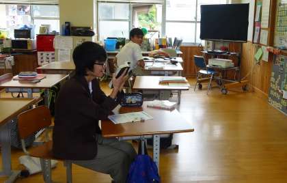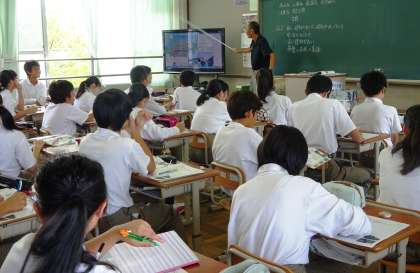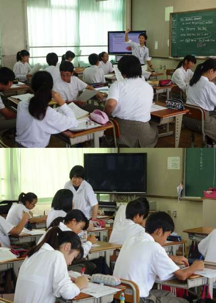 上から、2年2組 英語、国語(分割授業)、2年3組 社会、1組 です。